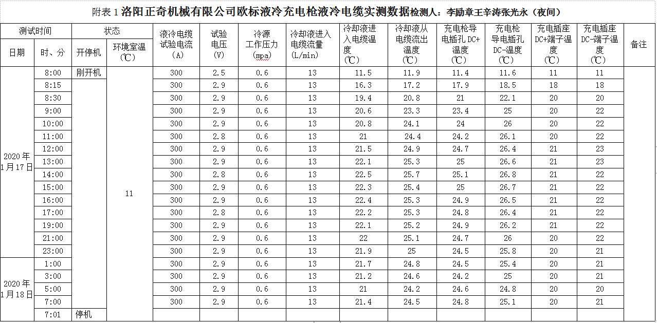 2.2液冷歐標(biāo)充電槍、歐標(biāo)充電槍用液冷線纜性能指標(biāo)